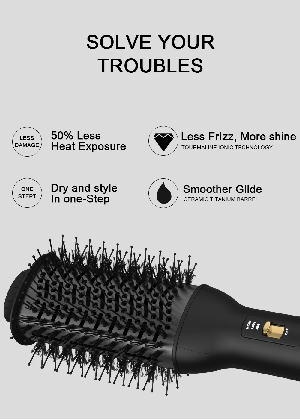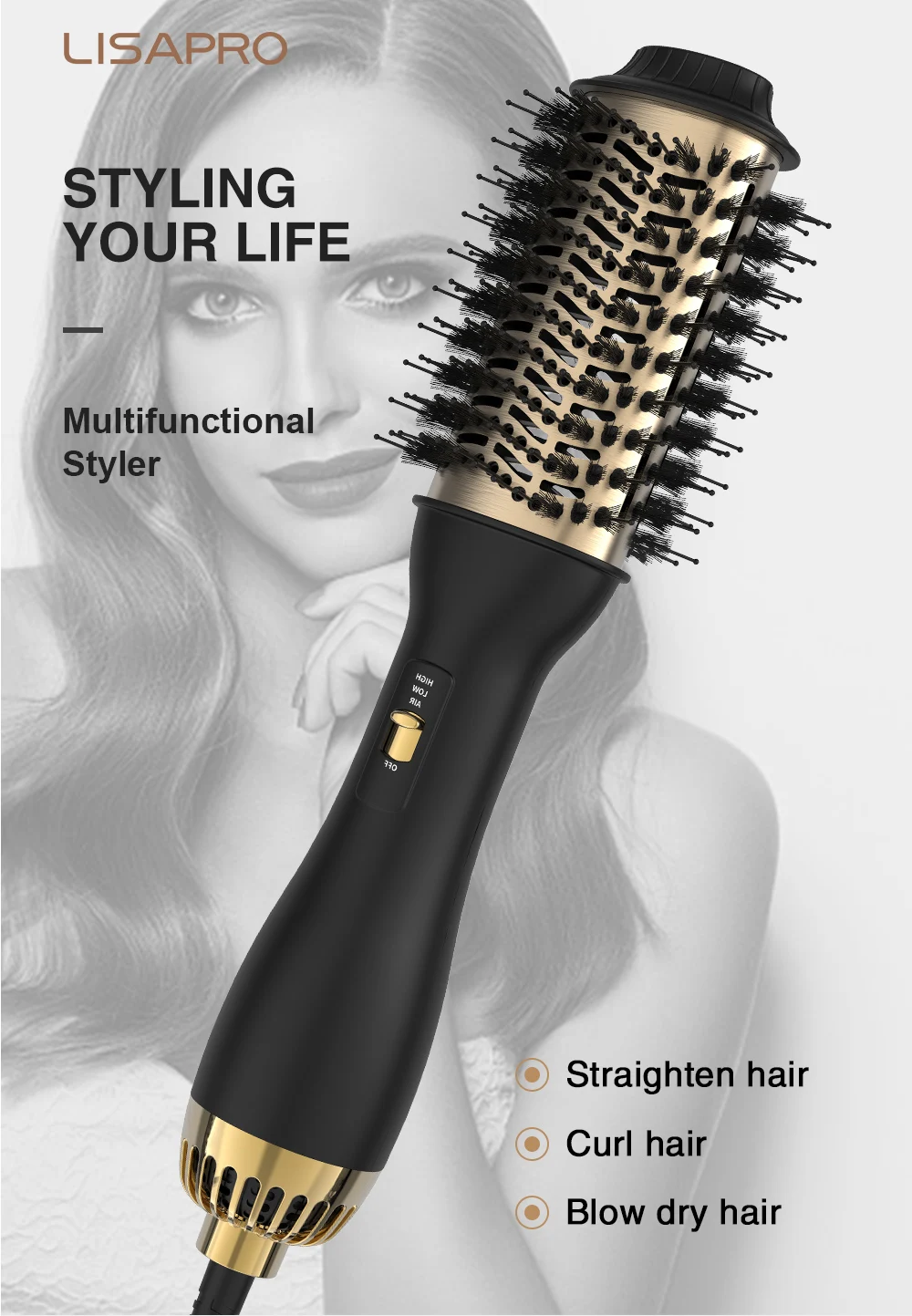 Introducing the ultimate game-changer for your daily hair routine: the LISAPRO Hot Air Brush & Volumizer. Say goodbye to frizzy, lifeless hair and hello to salon-quality results in the comfort of your home. This all-in-one styling tool is designed to dry, volumize, and curl your hair effortlessly, giving you a sleek, professional look in minutes.